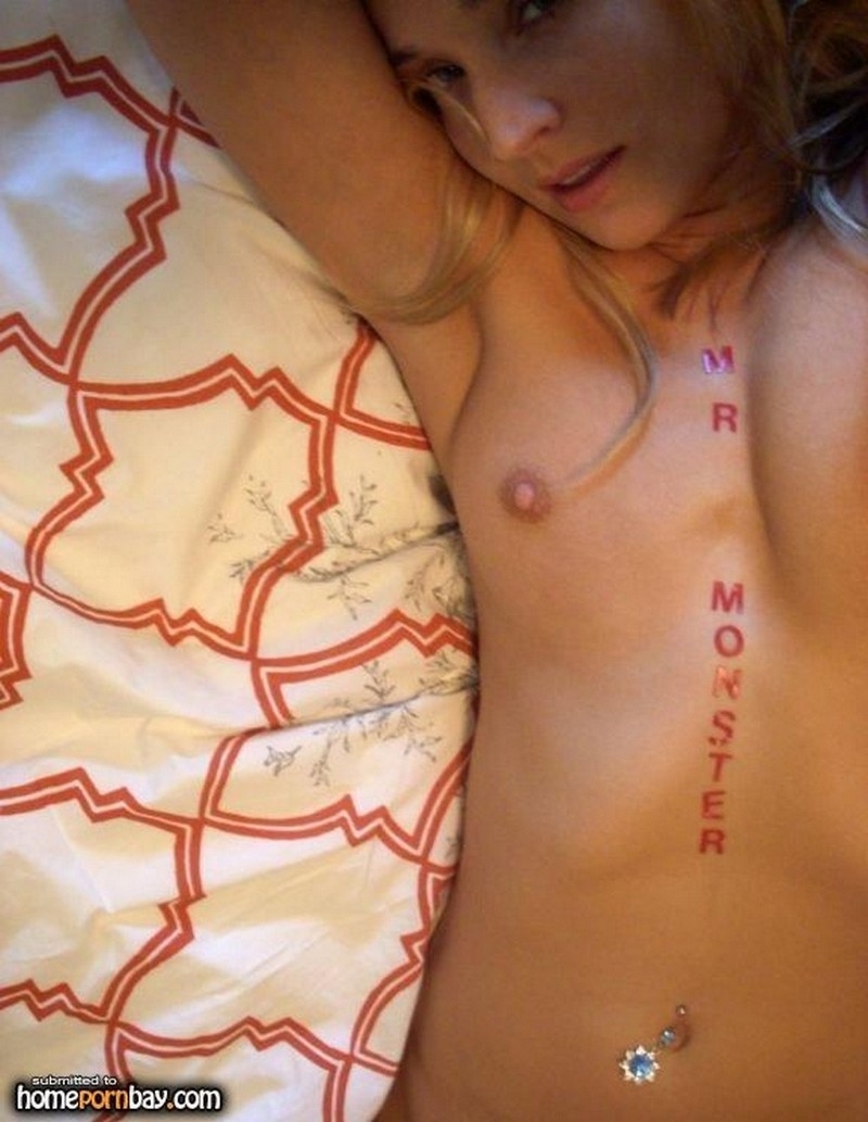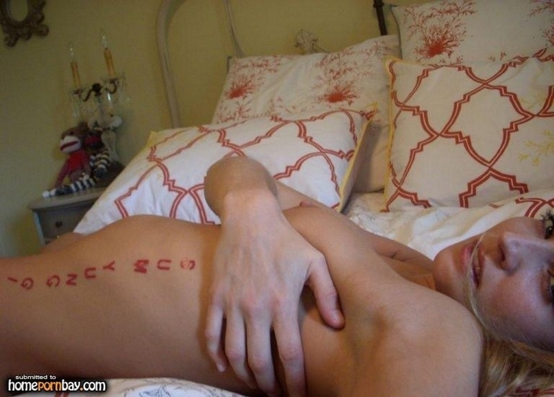 Ещё несколько снимков молодой блондинки, которая делает селфи, на этот раз в доме. Раздевшись до гола, тёлка позирует в кровати и фотает свои прелести, раздвигая ножки и показывая свою кисоньку. Блондинка снимает каждый сантиметр своего тела, всячески извиваясь в кровати.