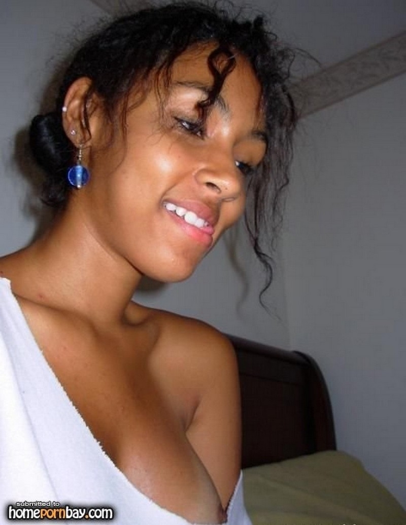 Небольшая подборка фоток чернокожей любительницы. Мулатка позирует перед камерой и показывает свои шоколадные прелести. К сожалению девка очень стеснительна, поэтому ничего кроме голых сисек мы не увидим. Но сиськи у неё зачётные, как два спелых персика, так и хочется попробовать их.