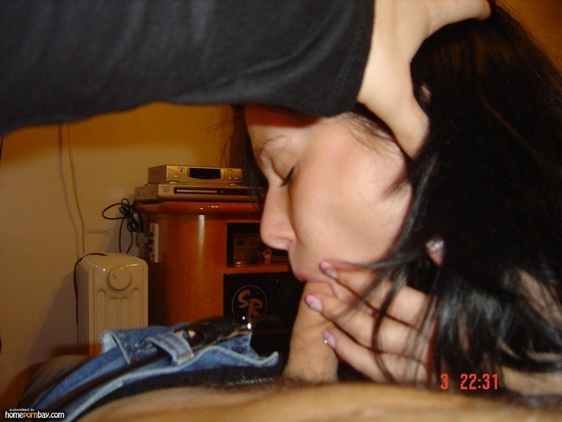Красивый минет от красивой брюнетки, которая даже на камеру не стесняется удовлетворять своего сожителя. Горячая подружка не только полирует его фаллос натруженным и нежными ротиком, но и соблазнительно вертит упругой девичьей попкой, словно зазывая отшлёпать её и хорошенько наказать своим членом...