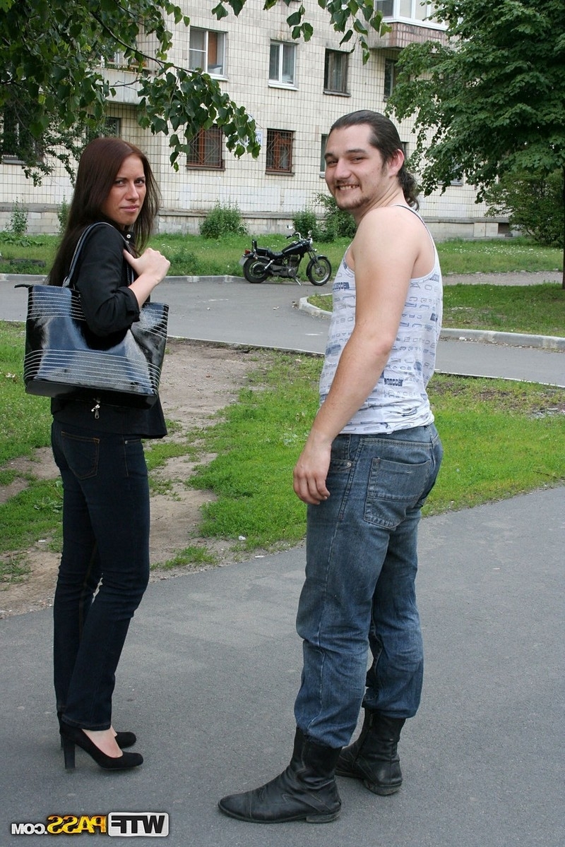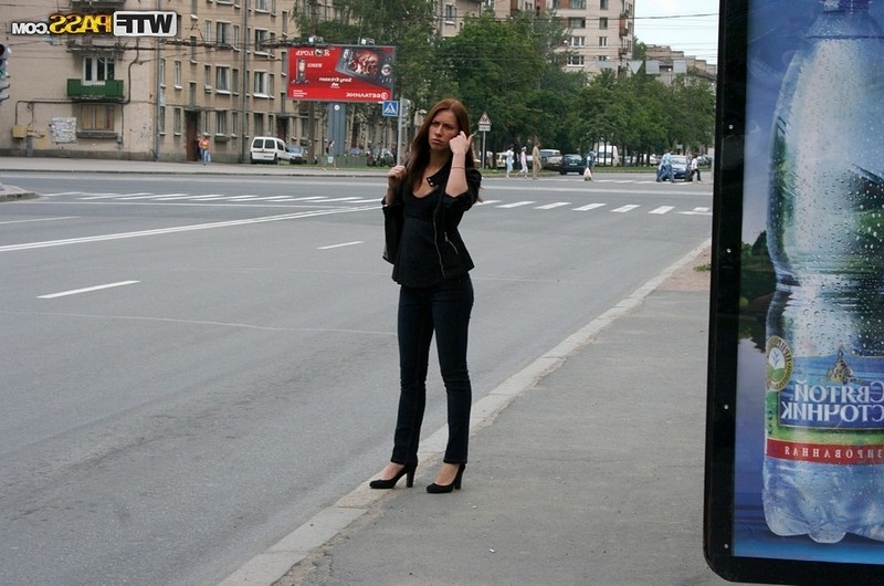 Русский байкер заметил одинокую красотку, ожидающую задержавшегося автобуса и предложил ей прокатиться на его байке. Тёлка явно повелась на его мотак и была не прочь отъехать с ним в ближайший лесок, где исполнила незнакомцу хороший минет и дала во все дырки.