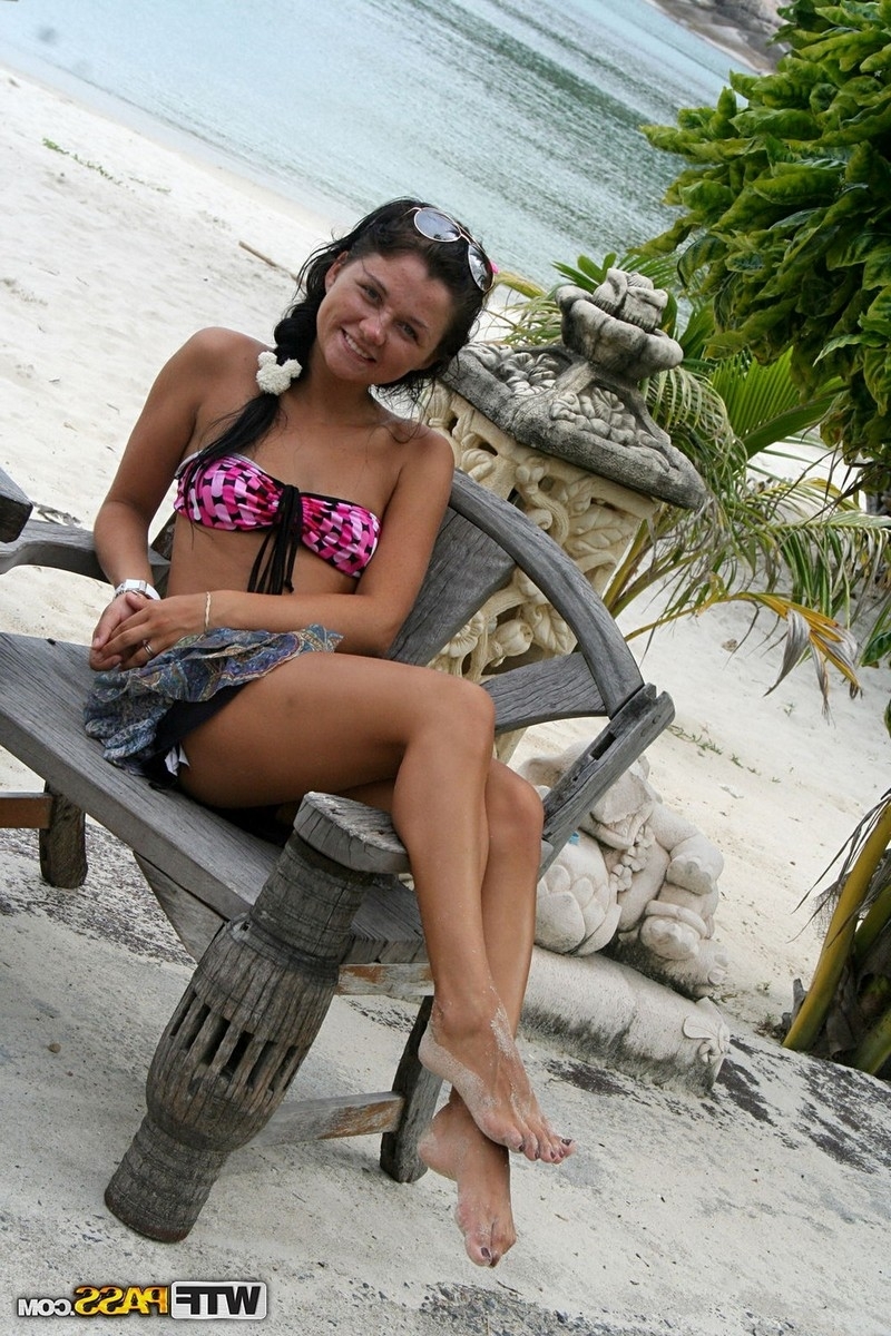 Фотохроники молодёжного отдыха на пляже. Накачанный мулат в отличии от своего хилого кореша оказался более везучим и смог уломать одну из их спутниц на потрахушки в отеле. Молоденькая брюнетка повелась на чернокожего качка с большим болтом, которым он растягивал её тугую попку.