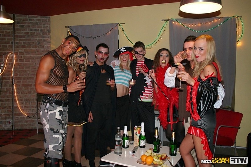 Горячая молодёжная групповуха на Хеллуин началась с того что самая нетерпеливая парочка перепихнулась прямо в подъезде. Ну а когда вся толпа собралась и поддала горячительных напитков, началось самое интересное. Выпившие тёлки трахались с первым увиденным членом, а порой и друг с дружкой шалили.