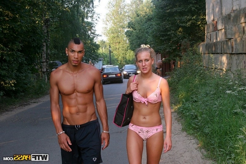 Длинноногая красотка загорала в бикини сверкая роскошными формами, когда к ней подкатили два парня. Негр со своим белым корешем легко развёл сочную незнакомку на двойной минет. Уединившись в какой то подворотне тёлка принялась отсасывать два члена, от чего сама нехило завелась и разрешила трахнуть её.