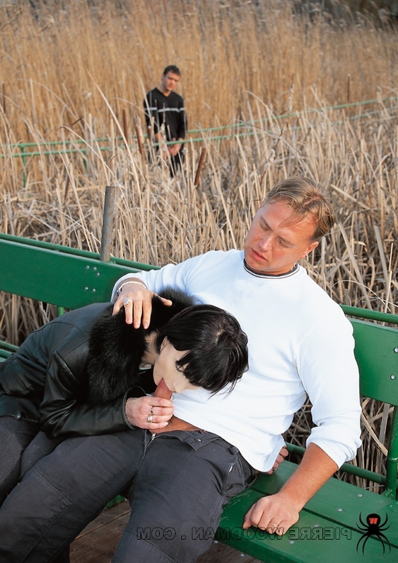 Горячая подружка во время свидания решила порадовать ухажёра минетом, взяв в рот в общественном месте. В результате их спалил случайный прохожий, но вместо того что бы свалить, тёлка подозвала незнакомца к себе и вскоре её имели в два ствола, загоняя во все отверстия, завершив трисомчик обильным камшотом.