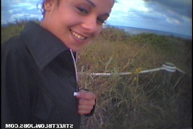 Симпатичная девушка отправилась с партнером на прогулку по пляжу. Уже был вечер и поэтому на пляже людей практически не было. Парочка долго блуждала, пока девка не предложила любимому сделать ему приятно. Они нашли кустики, где никто не смог бы увидеть влюбленных и девица встала на колени. Она обнажила грудь и принялась сосать член бойфренда.
