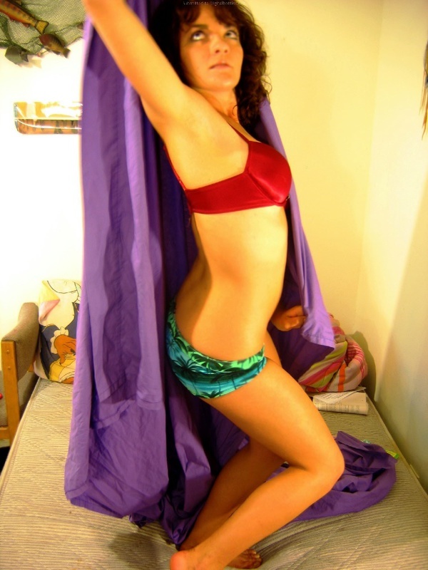 Кудрявая сучка раздевается и показывает киску