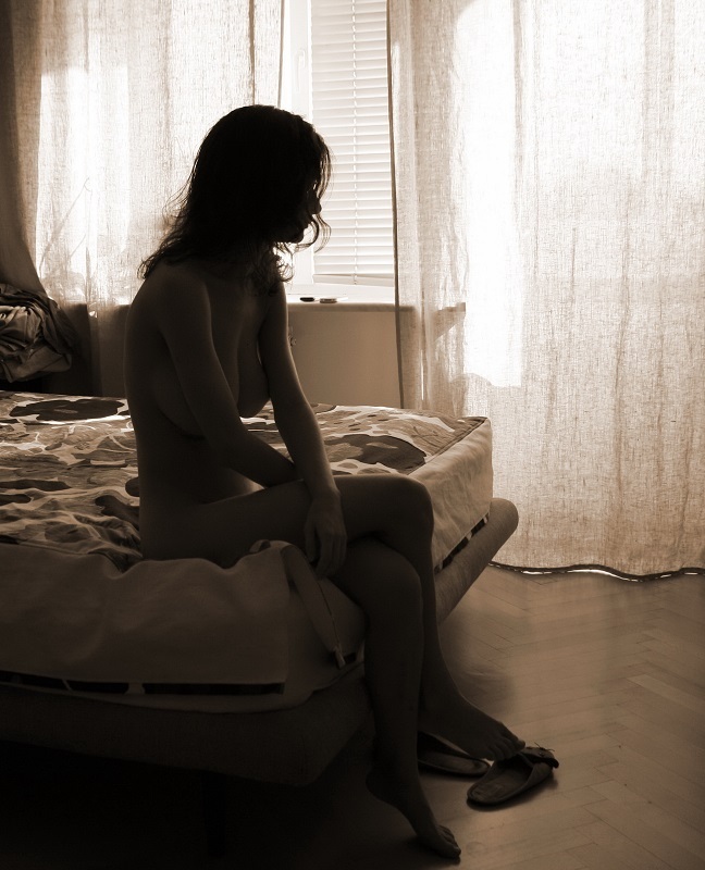 Девушка из провинции не знает что такое бритва. Ее лобок обильно зарос волосами и брюнетка не стесняется показывать густые волосы во время своей фотосессии дома. Она запечатлела также пышные сиськи, сняв не только трусики, но и полосатую майку. Брюнетка покрутилась по комнате, фотографируя непрезентабельную обстановку и делая домашние дела в обнаженном виде.