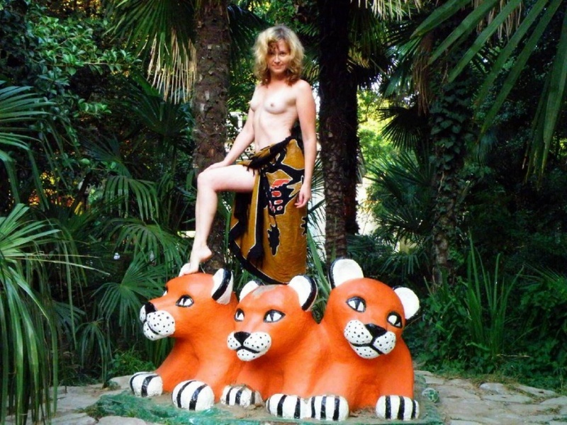 Стройная милашка приехала в отпуск к морю вместе с мужем. Веселый характер подталкивает ее на нетривиальные поступки. Озорница обнажается и позирует мужу на фоне скульптур, во время прогулки по базе, не стесняясь показывать небольшую, но сексуальную грудь. Купаться она предпочитает голой, демонстрируя аппетитные бедра и подтянутую задницу, прикрывая ручкой лишь лобок.