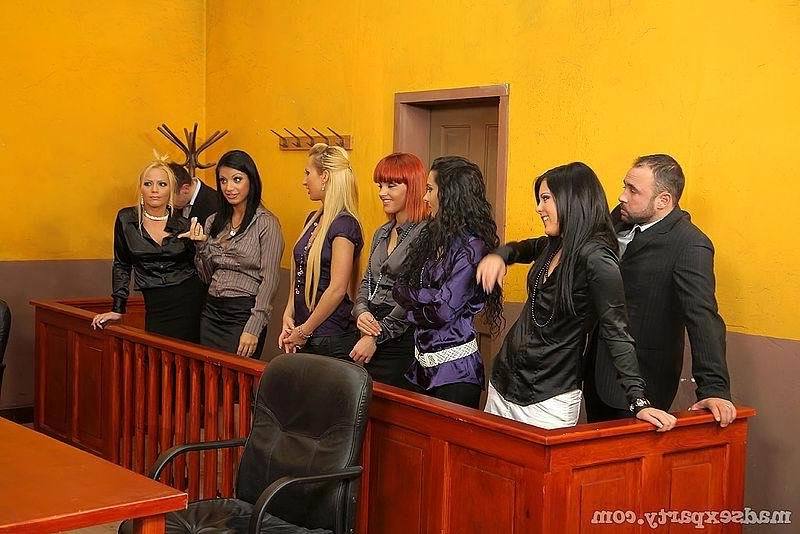 Очередное слушание по судебному разбирательству закончилось жесткой групповушкой. Вовлеченные в круговорот событий, участники и сами не поняли, как начали обнажаться и удовлетворять друг друга орально. Может быть, в этом виновато вино, но факт остается фактом, здание суда впервые видело такой разврат! Разгоряченные люди трахаются везде, женщины отдаются и выгибают изящные тела, подставляя под упругие члены судейской коллегии свои, ждущие проникновения киски! Мужчины готовы ублажать всех женщин, которые находятся вместе с ними. Белокурая бестия-судья задает тон групповушке, используя какие-то странные законы. Обиженным не уйдет никто