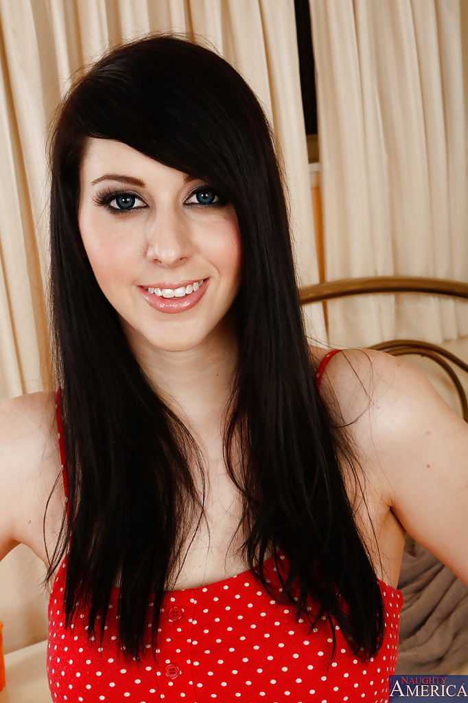 Девица с красивыми волосами темного цвета, кокетливо приподнимает красный сарафанчик. Она хочет немного пошалить со своим нежным телом. Дотронувшись до своей груди и пирсингу на сосочках, распутная телка кайфонула от прикосновения. Ее вагина так и манила к себе, и она принялась наслаждать свою пылающую плоть шаловливыми пальчиками до полного удовлетворения.