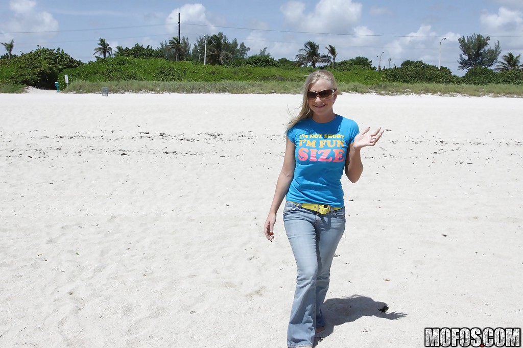 Стеснительная блондинка Бритни Брукс на пляже согласилась показать сиськи